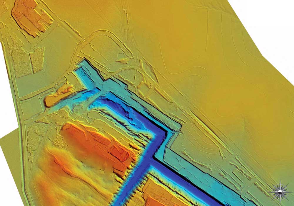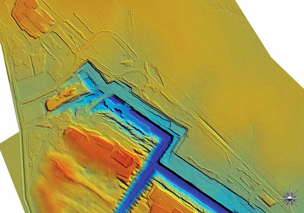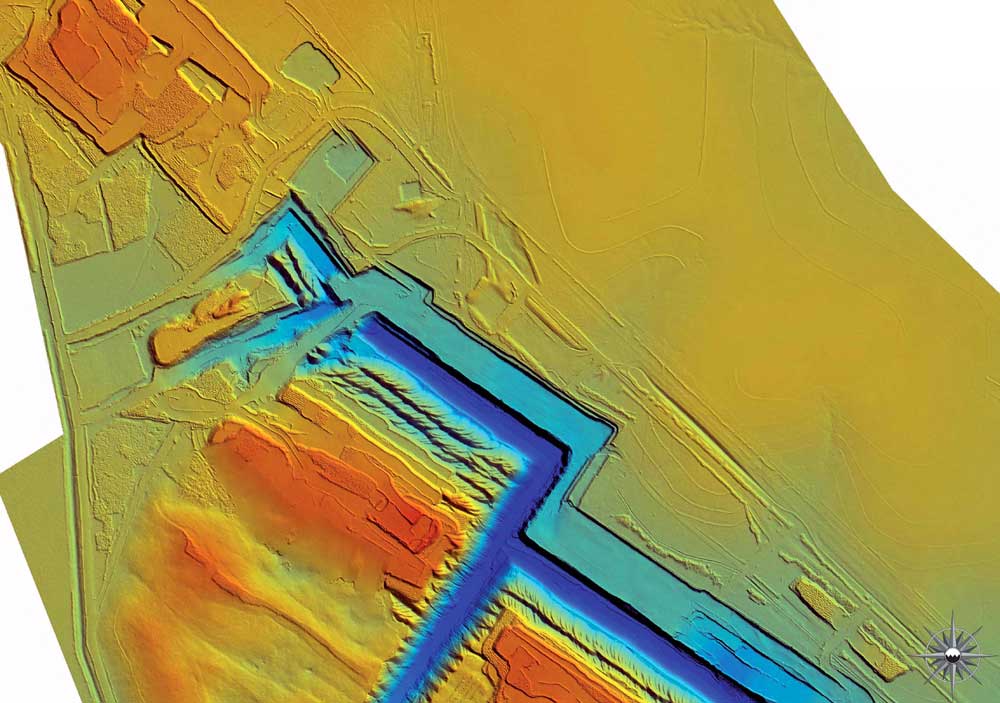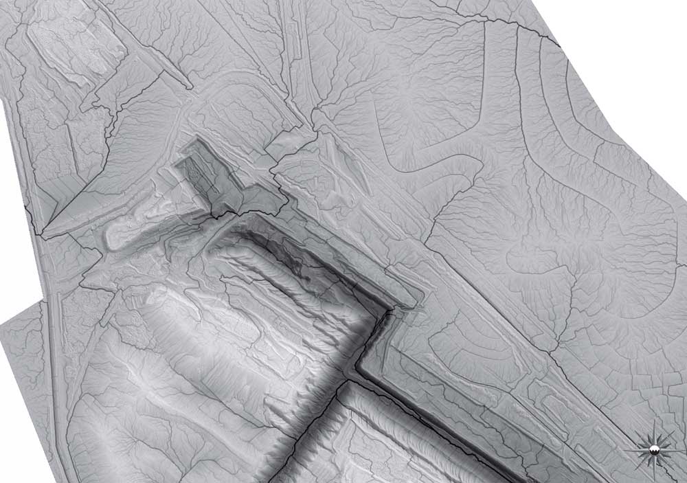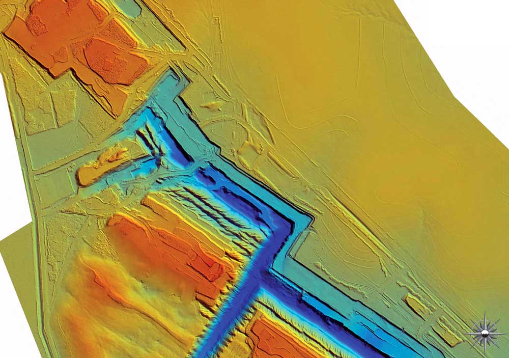 Flow paths, watersheds and ponding potential extracted from a detailed Digital Elevation Model (DEM).