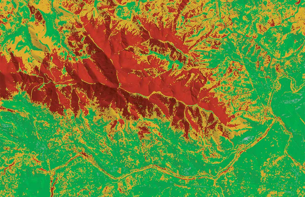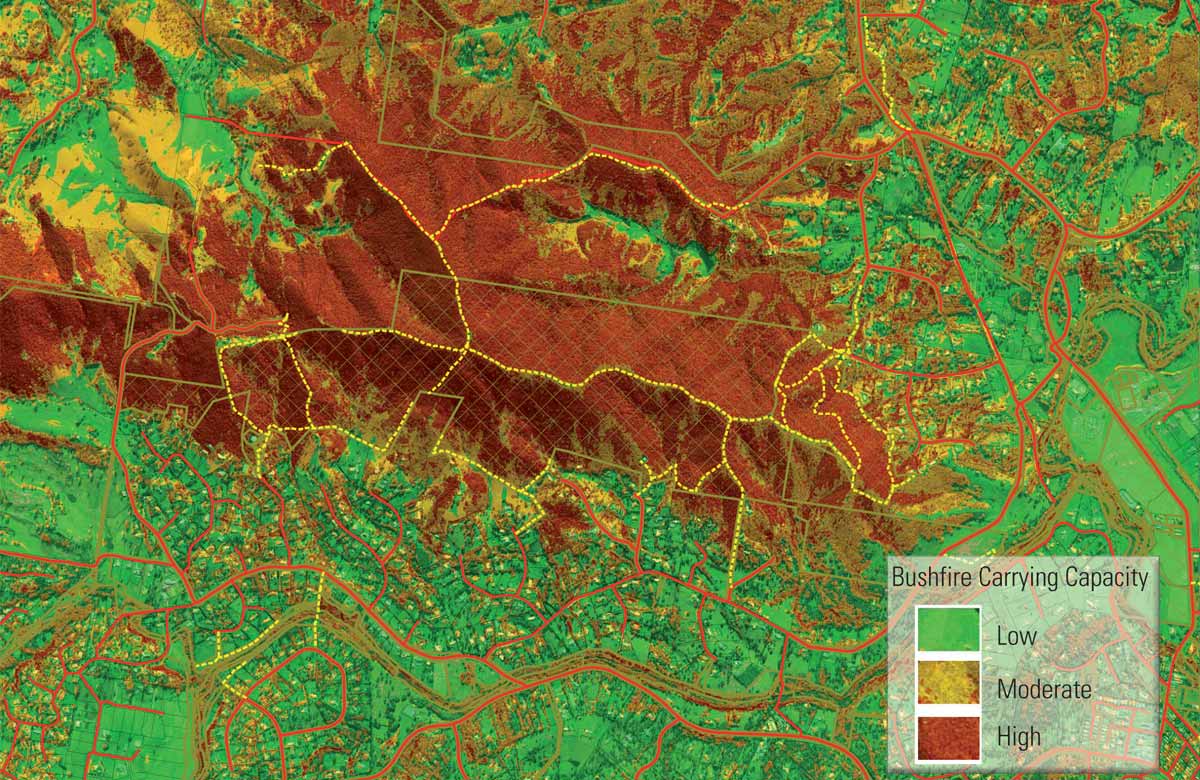 The progression of images below show the progress of bushfire hazard potential using LiDAR and Multispectral Data. The results are used by local councils in the production of Bushfire Action Plans